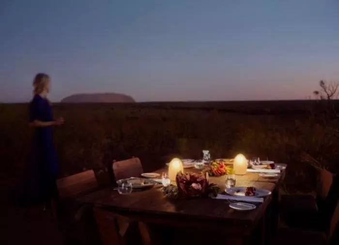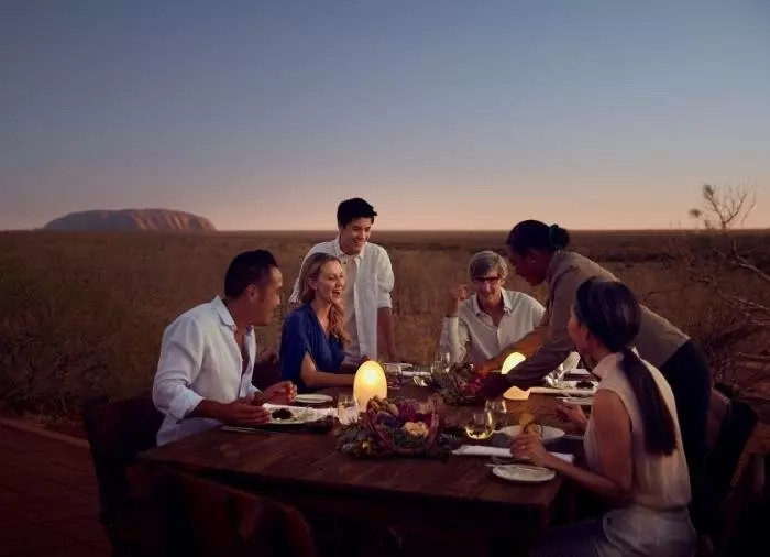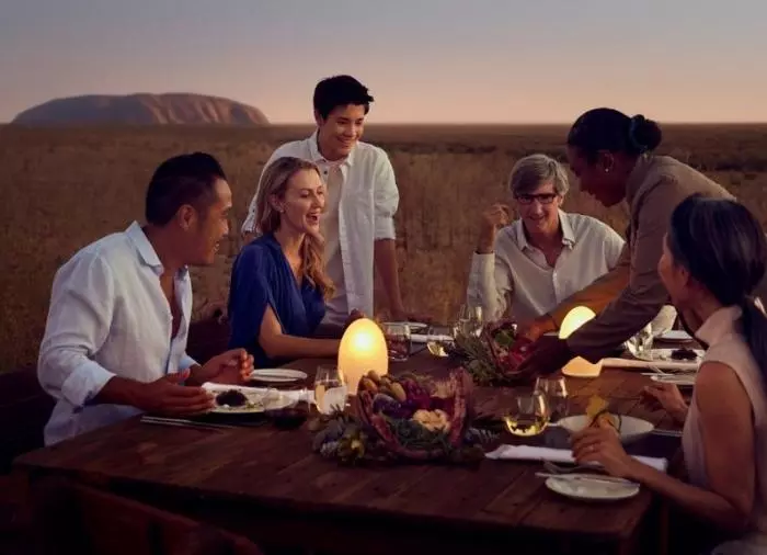 Tali Wiru on paikallista Anangun kieltä ja tarkoittaa ”kaunis hiekkadyyni”. Sinut toivotetaan tervetulleeksi samppanjalla, ja nautit Ulurun unohtumattomasta auringonlaskusta didgeridoon lumoavan musiikin säestyksellä. Illan tullen on aika tutustua kauniiseen hiekkadyyniin, missä sinua odottaa herkullinen 4 ruokalajin ateria. Viinit on paritettu tarkkaan eri ruokalajien kanssa, ja nyt on tiedossa jännittäviä yllätyksiä! Sekä ruoka että viini ovat luonnollisesti australialaisia, ja illallisen aikana pääset tekemään lähempää tuttavuutta Australian eri viiniseutujen kanssa.