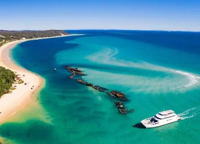 Hieman yli tunnin pituisen lauttamatkan jälkeen saavut Moreton Islandille, missä sinulla on koko päivä aikaa tutkia saarta. Saarikierros alkaa Tangalooma Island Resortista, jossa on tarjolla erilaisia maksullisia aktiviteetteja, kuten snorklausta, melontaa, suppailua, opastettuja kierroksia Segwaylla tai kävellen ja paljon muuta. Halutessasi voit myös ottaa rennosti rannalla, pelata tennistä, kokeilla jousiammuntaa tai lähteä tervehtimään saaren kuuluisia delfiinejä.