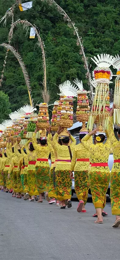 Ubud on viehättävä kaupunki, jossa vallitsee aivan ainutlaatuinen tunnelma. Uskonnot ja perinteet ovat paikallisille erityisen tärkeitä, ja kaduilla järjestetään usein seremoniallisia kulkueita, joissa voit nähdä valkoiseen pukeutuneiden balilaisten hindujen kantavan temppeleiden alttareille isoja koreja täynnä hedelmiä ja kukkia. Eloisan temppelikulkueen seuraaminen on kiehtova ja mukaansatempaava elämys.