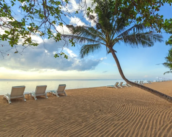 Illan tullen voit nauttia rannalla kauniista auringonlaskusta, jolle palmut, pieni paviljonki ja monet kalastajaveneet muodostavat täydelliset kulissit.