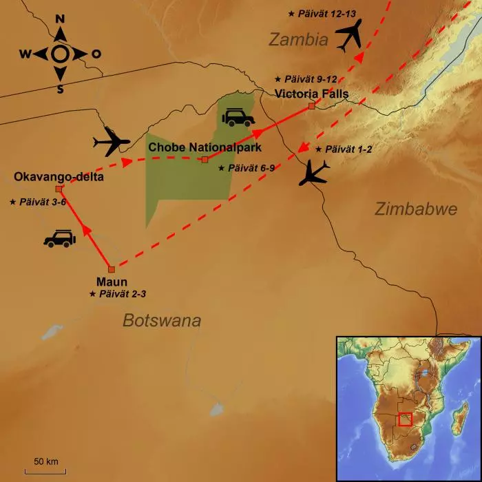 Kaikki ovat varmasti nähneet ainakin yhden Okavangon suistosta kertovan BBC:n luonto-ohjelman. Kaikille tuttu on myös tarina tohtori Livingstonesta, joka ”löysi” ja nimesi uudelleen Victorian putoukset. Ja kukapa ei haluaisi nähdä tuhansien norsujen laumoja omin silmin?