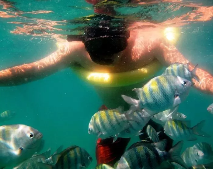 Voit myös etukäteen varata veneretken upealle siniselle laguunille, jossa voit uida ja snorklata värikkäiden kalojen seassa kristallinkirkkaassa vedessä.