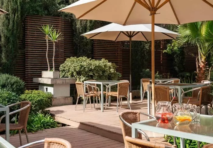 Hotellissa on ravintola ja lounge, johon kuuluu viihtyisä terassi.
