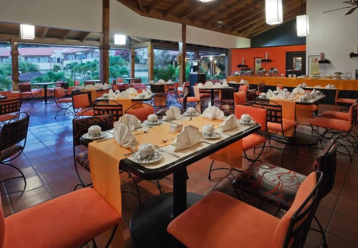Majoitukseen sisältyvä aamiainen tarjoillaan hotellin ravintolassa, missä voit istua joko sisällä tai ulkona katetulla terassilla, josta avautuu upea näköala. Ravintolassa on tarjolla myös paikallisia costaricalaisia ruokia ja länsimaisen keittiön herkkuja. Jos mielesi tekee eksoottista cocktailia, voit tilata sellaisen hotellin baarista, joka sijaitsee aivan uima-altaan vieressä.