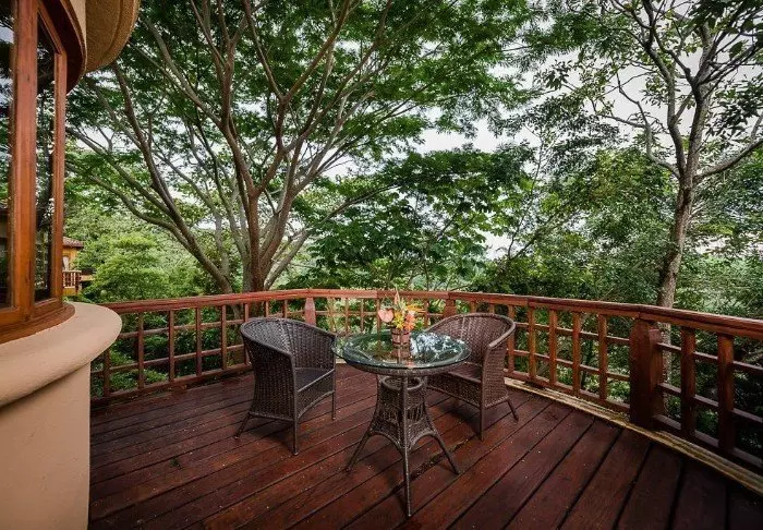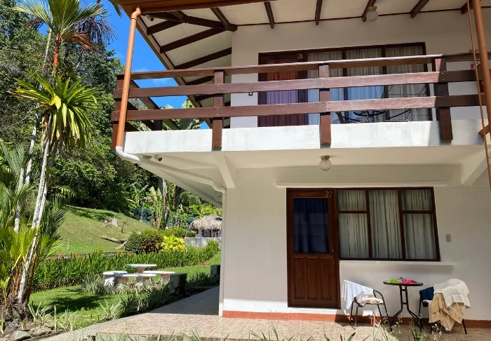 Hotellin huoneet ovat pääasiassa puurakenteisia, ja ne on sisustettu luonnollisilla väreillä ja vihreillä sävyillä. Kaikissa huoneissa on ilmastointi, kaapelitelevisio ja minijääkaappi sekä oma kylpyhuone, jossa on hiustenkuivaaja. Lisäksi kaikissa huoneissa on oma pieni katettu terassi, jonka tuoleilla on mukava istuskella, rentoutua ja nauttia vehreästä luontomaisemasta – ja ehkäpä bongata myös värikäs perhonen tai kolibri.