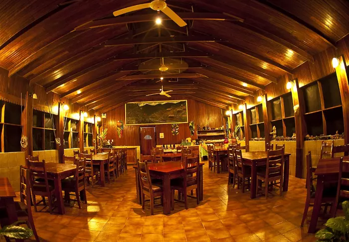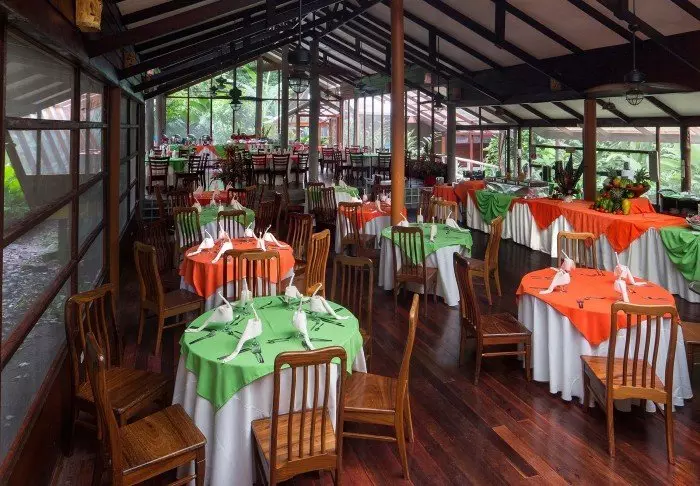 Lodgen ravintolassa tarjoillaan eurooppalaisia ruokalajeja ja perinteisiä costaricalaisia erikoisuuksia, jotka valmistetaan tuoreista paikallisista aineksista. Myös ravintolasta avautuu hieno näköala lodge ympäröivään rehevään luontoon. Majoitukseen sisältyvä aamiainen tarjoillaan ravintolassa.