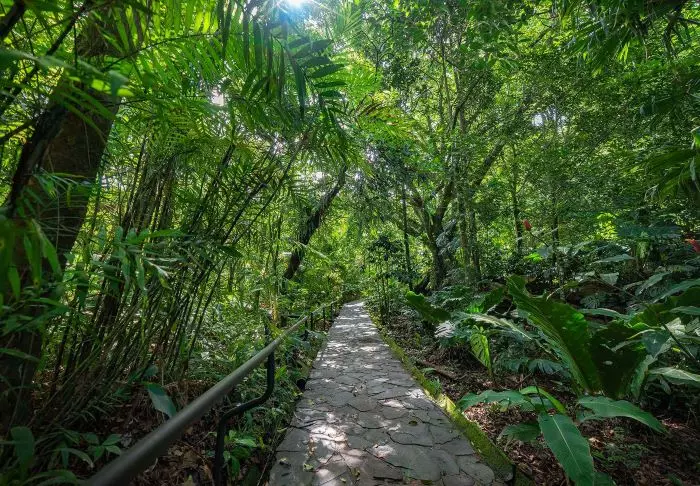 Aamiainen tarjoillaan hotellin ravintolassa, josta on hieno näköala vehreään trooppiseen puutarhaan. Puutarhan yksityisemmässä osassa on kaksi uima-allasta, joissa on mukava virkistäytyä. Uinnin jälkeen voit asettua rentoutumaan aurinkotuolille, ja hyvällä onnella voit nähdä puutarhassa muun muassa apinoita, kolibreja ja leguaaneja.