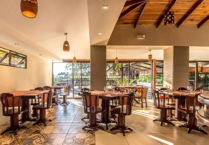 Lodgen ravintolassa on tarjolla sekä costaricalaisia erikoisuuksia että kansainvälisen keittiön tuttuja ruokia. Majoitukseen sisältyvä aamiainen tarjoillaan myös lodgen ravintolassa. Ravintolassa on usein paikallinen live-esiintyjä, jonka musiikista voit nauttia aterian yhteydessä tai viinilasillisen painikkeeksi. Iltapäivällä voit tilata kupin kahvia ja suunnata lodgen loungealueelle lukemaan kirjaa. Viihtyisällä sisäpihalla puolestaan luovat tunnelmaa suihkulähteet, puistonpenkit ja monenlaiset vehreät kasvit.