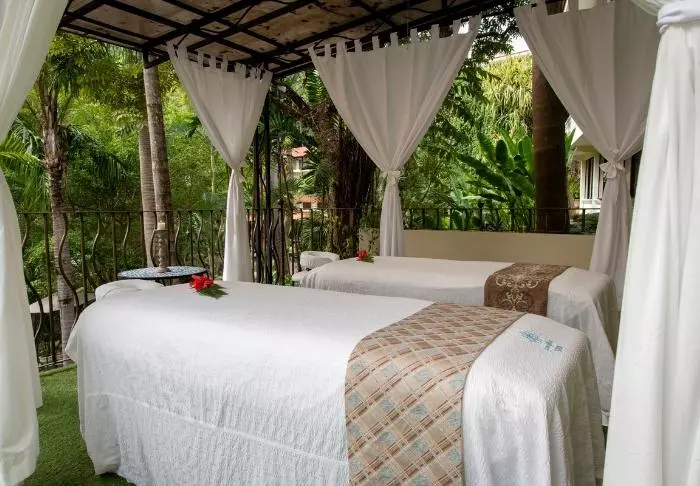 Voit myös hemmotella itseäsi ylellisessä ja eksklusiivisessa kylpylässä, jossa on tarjolla erilaisia hoitoja ja hierontaa lisämaksusta.