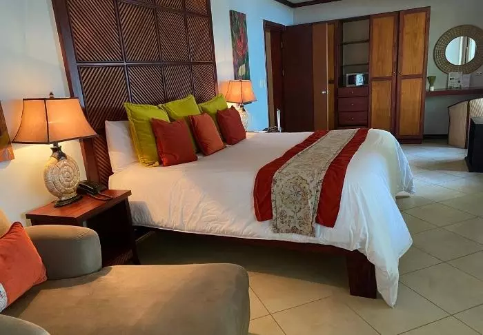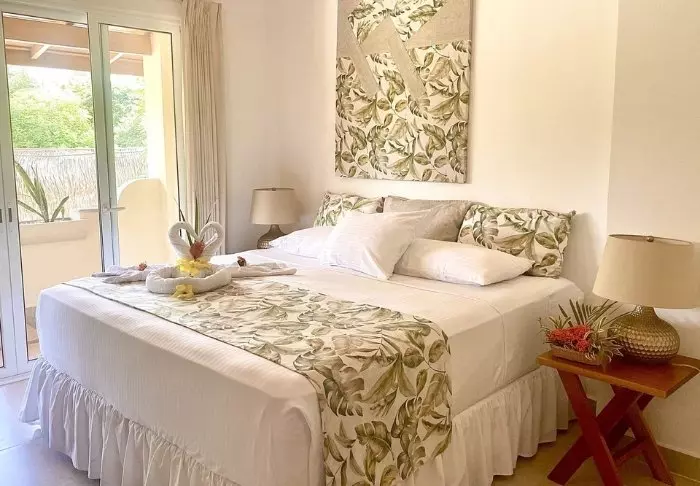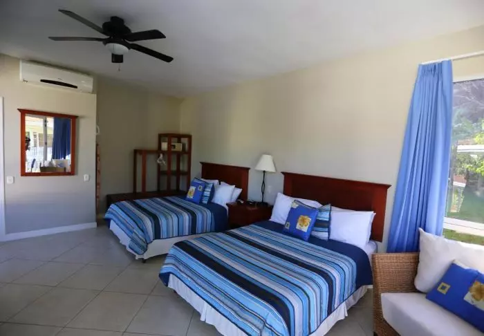 Hotellissa on vain 32 huonetta, joista on näköala joko trooppiseen puutarhaan tai merelle. Huoneet ovat tilavia ja kauniisti sisustettuja, ja niiden mukavuuksiin kuuluvat ilmastointi, jääkaappi, kaapeli-TV, kahvinkeitin, tallelokero, WiFi, hiustenkuivaaja ja kylpytuotteet.