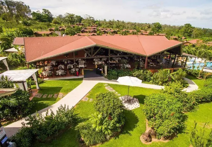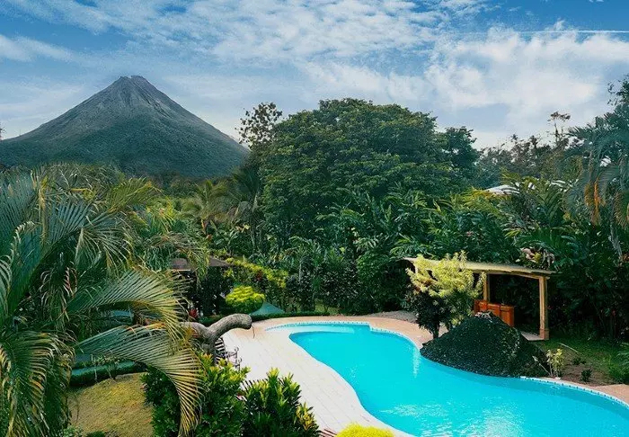 Majoitukseen sisältyvä aamiainen tarjoillaan hotellin katetussa ulkoilmaravintolassa, josta avautuu hurmaava näköala ympäröivään luontoon. Ravintolassa tarjoillaan myös lounasta ja illallista. Keskellä hotellin rehevää puutarhaa on uima-allas, joka kutsuu virkistäytymään tai rentoutumaan aurinkotuolissa Arenal-tulivuoren upeissa maisemissa.