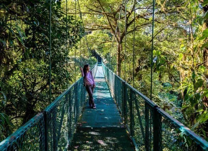 Tänään sinua odottaa jännittävä 2,5 kilometrin patikkaretki Monteverden pilvimetsän puiden latvuksiin rakennettuja riippusiltoja pitkin! Pilvimetsän siimeksessä vallitsee ainutlaatuinen, lähes mystinen tunnelma. Korkeuksissa sinua ympäröi satumainen maisema, jota hallitsevat valtavat puut, saniaiset, orkideat, sammalet ja lukemattomat muut kasvilajit, jotka kasvavat puiden rungoilla.