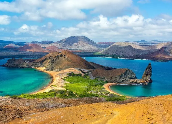 Santa Cruzin pohjoispuolella sijaitsevan pikkuisen Bartolomén oranssiin, punaiseen, mustaan ja vihreään vivahtavat maisemat tekevät siitä yhden Galápagossaarten kauneimmista saarista. Saaren tunnusmerkkeihin kuuluu laavapurkauksen seurauksena syntynyt vaikuttava Pinnacle rock.
