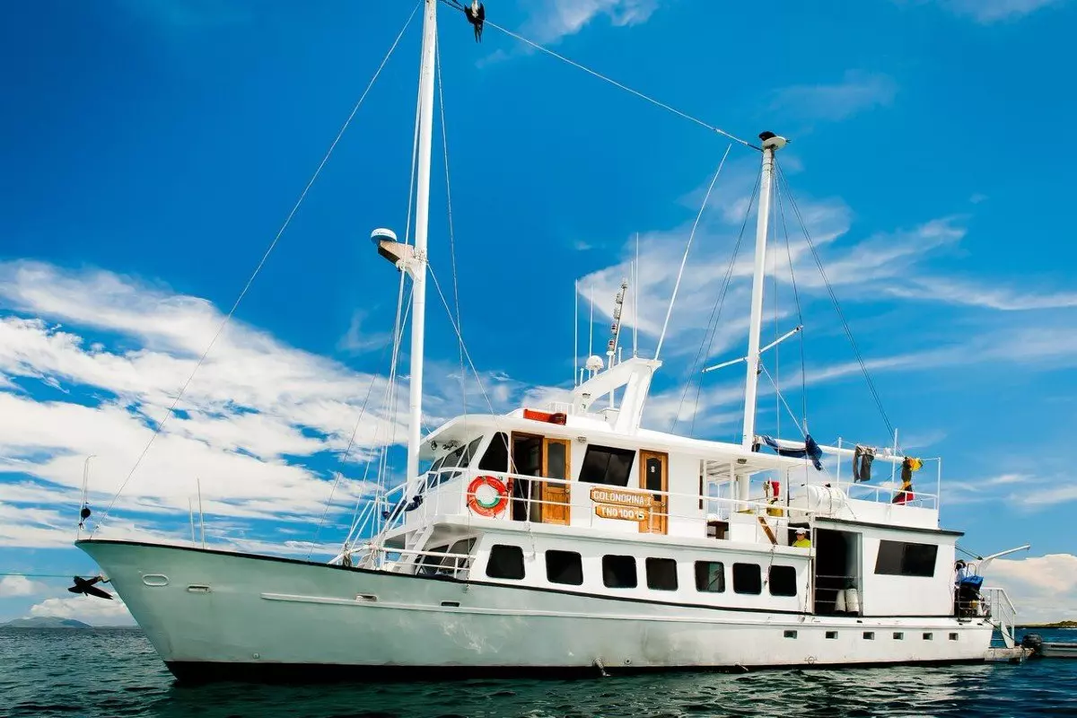 Sinut noudetaan Baltran lentokentältä ja kuljetetaan Golondrina I -alukselle, josta tulee kelluva kotisi seuraavien 5 päivän ajaksi. Täällä pääset majoittumaan hyttiisi, ja tervetuliaistilaisuuden jälkeen on vuorossa maittava lounas. Tervetuliaistilaisuudessa opas esittelee kapteenin, kokin ja muut miehistön jäsenet sekä kanssamatkustajat ja käy läpi iltapäivän mielenkiintoisen ohjelman.