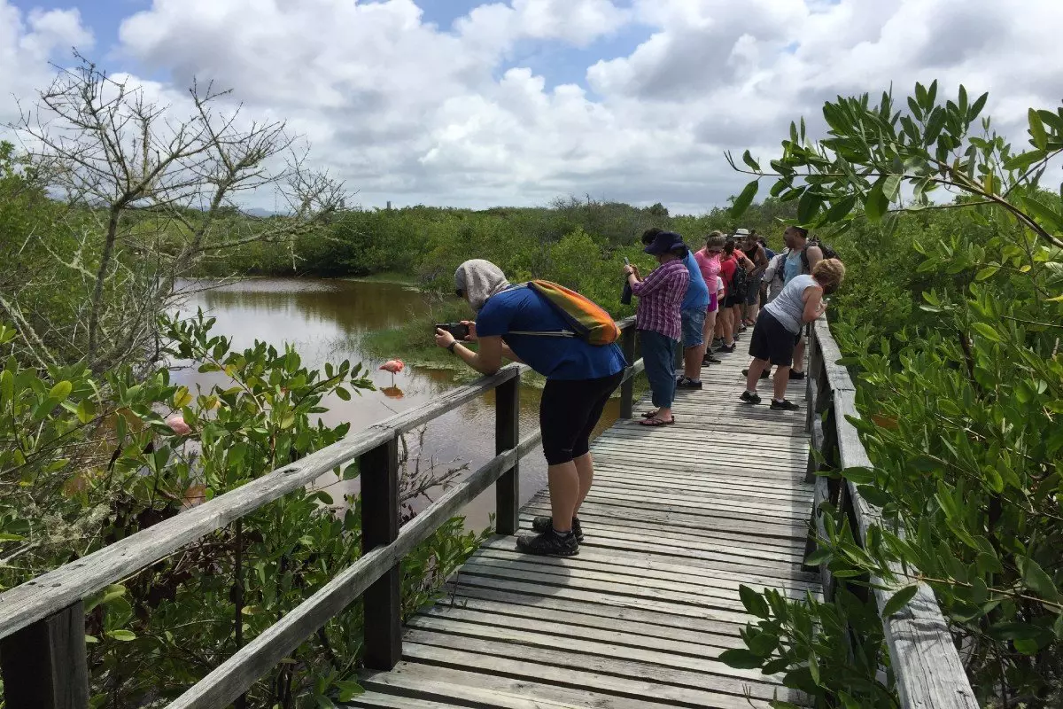 Iltapäivällä lähdet retkelle tutustumaan Isabela-saaren kohokohtiin. Retki alkaa vierailulla Arnaldo Tupizan jättiläiskilpikonnien kasvatuskeskukseen, joka sijaitsee hieman kaupungin ulkopuolella. Keskuksessa vapaaehtoiset työskentelevät saaren jättiläiskilpikonnien määrien lisäämiseksi, ja siellä voit nähdä satoja erikokoisia kilpikonnia. Opas vie sinut myös kiehtovalle kosteikkoalueelle, missä voit nähdä lintuja, kuten pitkäjalkoja, liejukanoja sekä upeita flamingoja.