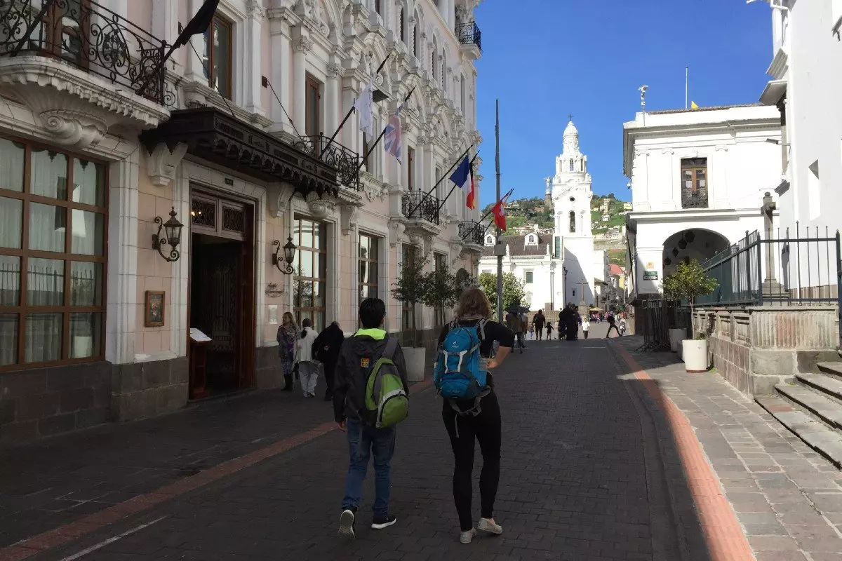 Vierailet mm. Plaza de la Independencialla (itsenäisyyden aukio), jota ympäröivät tärkeät rakennukset, kuten presidentin palatsi, hallituksen rakennus, arkkipiispan palatsi ja Quiton katedraali. Aukion jälkeen ovat vuorossa kaupungin vanhin kirkko San Francisco ja sen jälkeen kaupungin kuuluisin kirkko, lähes kauttaaltaan lehtikullalla silattu La Compañían kirkko.