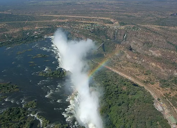 Ilmasta se kuitenkin onnistuu! Ilmasta on myös henkeäsalpaavat näköalat yli monien kanjonien, jotka valtavat vesimäärät ovat ajan saatossa kaivertaneet maisemaan. Pitkä helikopterilento tarjoaa luonnollisesti enemmän mahdollisuuksia valokuvien ottamiseen. Myös lyhyellä 10 minuutin lennolla näköalat ovat uskomattoman upeat yli koko putouksen, eikä kuvauksellisista kohteista ole pulaa. Esimerkiksi jylisevien putousten yläpuolella kimmeltävistä sateenkaarista saa helposti todella hienoja otoksia. Victorian putouksia ei turhaan kutsuta paikallisella kielellä nimellä Mosi-oa-Tunya, mikä tarkoittaa ”Savu, joka jylisee” (”Smoke that thunders”).