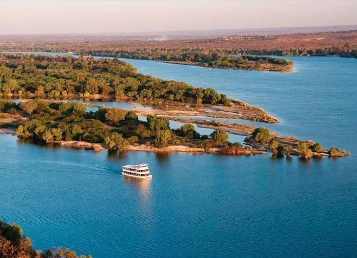 Retken ensimmäinen osuus on luonteeltaan perinteinen jokisafari. Purjehdus tehdään verkkaiseen tahtiin pitkin Sambesi-joen saarten välissä olevia kanavia. Joen rannan ja sen pienten saarten monet puut houkuttelevat lukuisia lintuja, ja välillä voit nähdä virtahevon nousevan pintaan. Krokotiilit muistuttavat osin vedessä ja osin maalla lojuvia puunrunkoja. Elefantit liukuvat veteen ja uivat saarille aina valmiina etsimään uuden puun, jota vasten ne voivat kyhnyttää itseään. Yhdellä pikkusaarella nautitaan välipala ja drinkki.