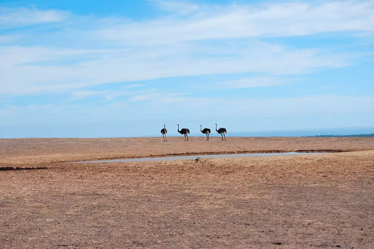 Tämän jälkeen on vuorossa strutsitila, missä tutustutaan strutsinkasvatukseen ja kuullaan, miten juuri Oudtshoornista on tullut maailman strutsipääkaupunki. Tilan omassa myymälässä myydään hienoja matkamuistoja.