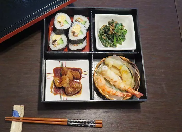 Bento box on japanin vastaus eväspaketille. Bentolaatikot ovat pieniä eväsrasioita, joihin pakataan riisiä, kalaa tai lihaa, kasviksia, sushia jne. Bentoja on saatavilla kaikkialla, ja ne ovat täydellisiä lounasruokia. Tänään sinulla on mahdollisuus oppia valmistamaan oma bento box. Kurssi alkaa japanilaiseen tapaan kupillisella vihreää teetä ja kokkien esittelyllä. Kokit puhuvat hyvää englantia.