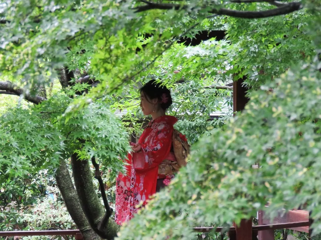 Voit esimerkiksi vain kävellä kaupungin kaduilla ja nauttia tunnelmasta. Huomaat pian, että Kiotossa on paljon japanilaisia turisteja, ja suosittu harrastus paikallisten keskuudessa – niin naisten kuin miestenkin – on pukeutua päiväksi perinteiseen kimonoon. Kauniit asut tuovat katukuvaan väriä, ja etenkin nuoret nauttivat pukeutumisesta silminnähden.