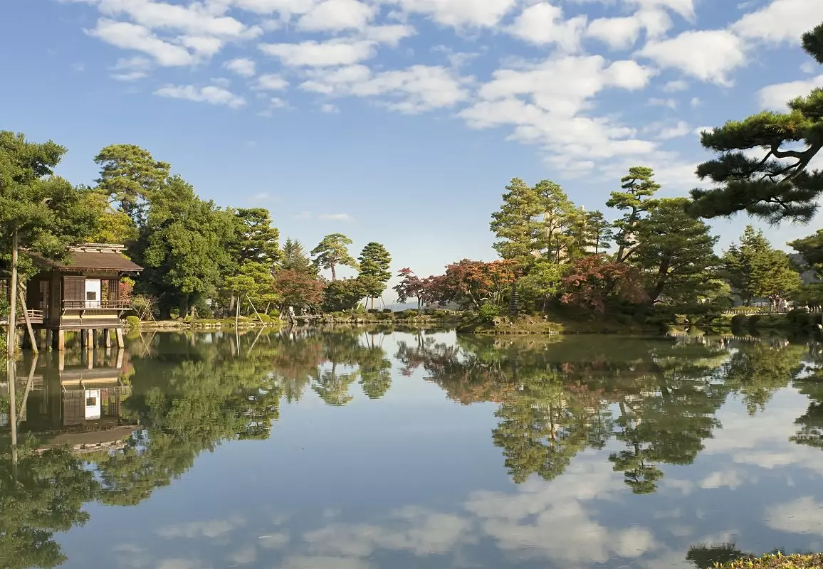 Seuraavaksi on vuorossa lähes 400-vuotias Kenroku-enin puisto, jonka sanotaan olevan yksi Japanin kolmesta kauneimmasta puistosta. Siksi se onkin erittäin suosittu vierailukohde. Nimi ”Kenroku-en” viittaa esteettisesti täydelliseen yhdistelmään vettä, tilaa ja rauhaa, jotka ovat kauniin japanilaisen puutarhan peruselementtejä.