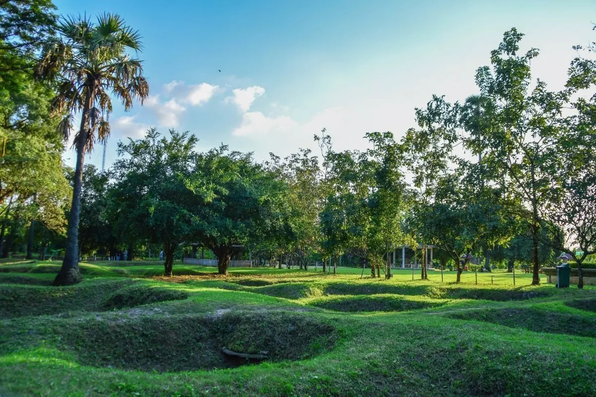 Rauniokaupunkia ja temppeleitä ympäröi vallihauta ja vehreä kasvillisuus. Alueella vallitsee vaikuttavan levollinen tunnelma, ja kävijä voi helposti tuntea kuin astuneensa aivan eri maailmaan.