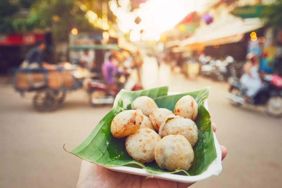 Kävellessäsi torilla et voi olla viehättymästä sen tunnelmasta, kun erilaisia khmer-herkkuja myyvien ruokakojujen tuoksut nostavat veden kielelle. Valitse herkullinen pala grillattua lihaa tai kevyt nuudeliruoka ja istahda yhdelle monista jakkaroista nauttimaan välipalasta yhdessä paikallisten kanssa. Jos olet rohkealla päällä, voit myös kokeilla vartaisiin pistettyjä grillattuja sirkkoja. Huuhtele ruoka lopuksi kylmällä paikallisella oluella.