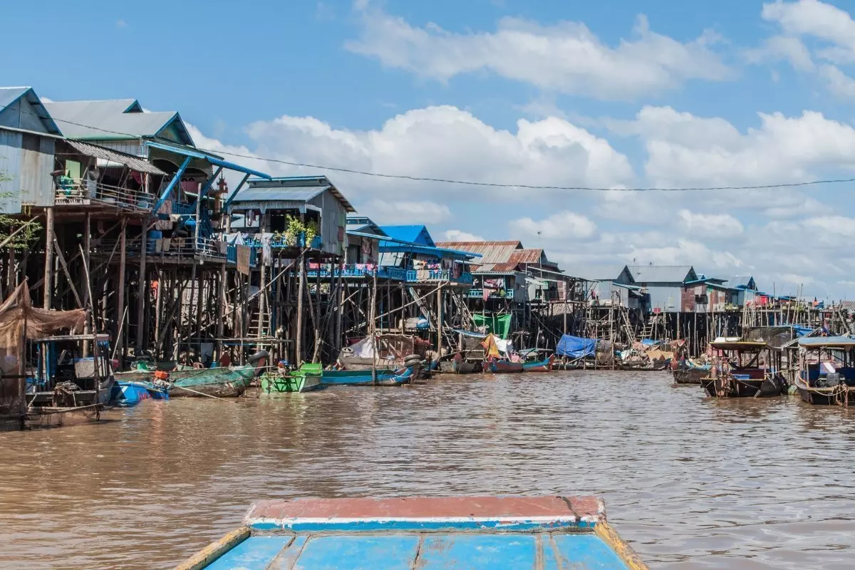 Rannalla nouset veneeseen, joka vie sinut Kompong Phlukin kalastajakylään. Kylässä tutustut pääasiassa kalastuksesta elantonsa saavien perheiden elämään ja työhön. Perheet asuvat järven rannalle paalujen varaan rakennetuissa värikkäissä taloissa, jotka pysyvät kuivina silloinkin, kun sadekaudella kylän kapeat kadut muuttuvat pieniksi kanaviksi. Kuivalla kaudella korkeat paalut ovat näkyvissä.