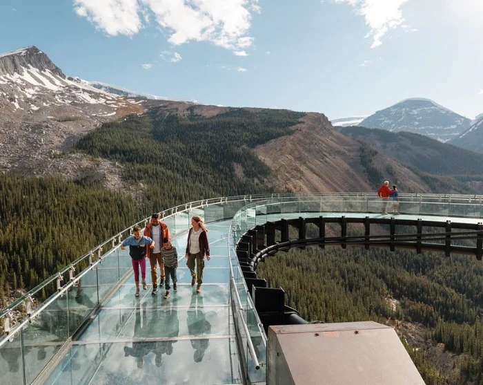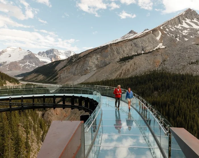 Matka alkaa Columbia Icefield Discovery Centrestä, josta sinut kuljetetaan bussilla näköalapaikalle. Täällä odottaa kilometrin pituinen kävelysilta, joka on rakennettu suoraan kallioseinämään. Voit kävellä siltaa pitkin omaan tahtiisi ja tutustua mielenkiintoisiin näyttelyihin, jotka kertovat alueen geologiasta, eläimistöstä ja historiasta.
