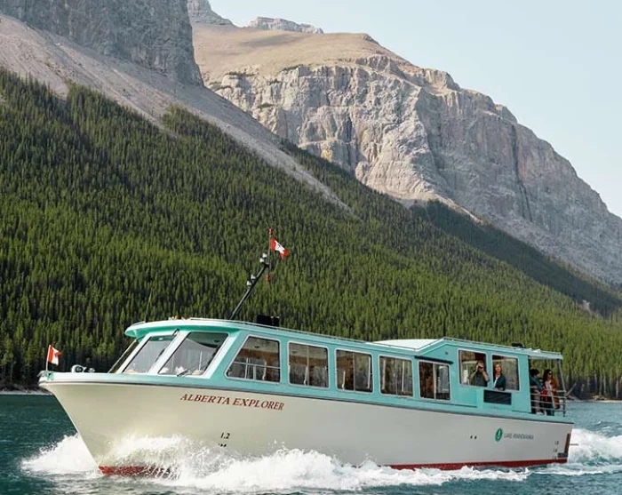 Lähde tunnelmalliselle veneretkelle Lake Minnewankalle, joka on Banffin kansallispuiston suurin järvi ja jylhien vuorten ympäröimä luontoparatiisi.