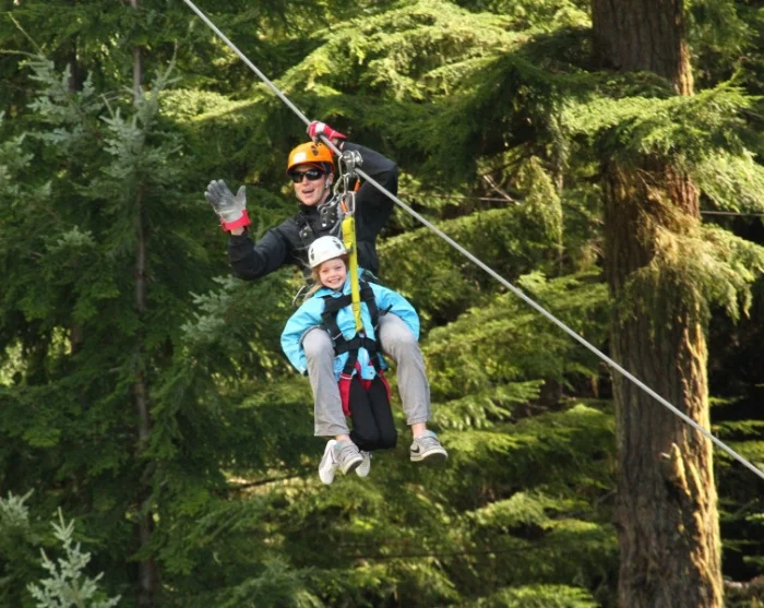 Liidät tiheiden havumetsien, laaksoihin viettävien jyrkkien rinteiden ja kuohuvan Fitzsimmons Creek -joen yllä. Selkeällä säällä saatat jopa nähdä horisontissa jäätiköitä ja lumipeitteisiä vuorenhuippuja – näky on vaikuttava ja taatusti ikimuistoinen.
