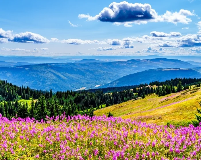 Albertan lumiset vuorenhuiput jäävät taakse, kun saavut Brittiläiseen Kolumbiaan ja tulivuorten muodostamaan Wells Gray -puistoon, jossa ikimetsät ja kuohuvat vesiputoukset hallitsevat maisemaa. Täällä sinulla on tilaisuus nähdä mustakarhuja.