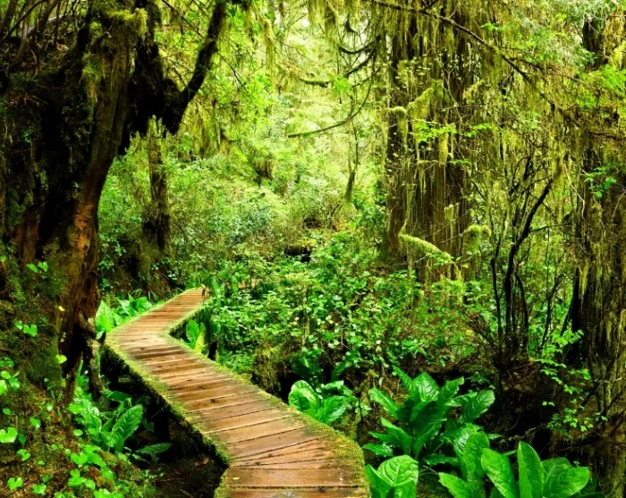 Matkalla Uclueletiin suosittelemme vierailua Cathedral Grovessa (MacMillan Provincial Parkissa), jossa voit jaloitella taivasta hipovien 800-vuotiaiden lännendouglaskuusien keskellä.