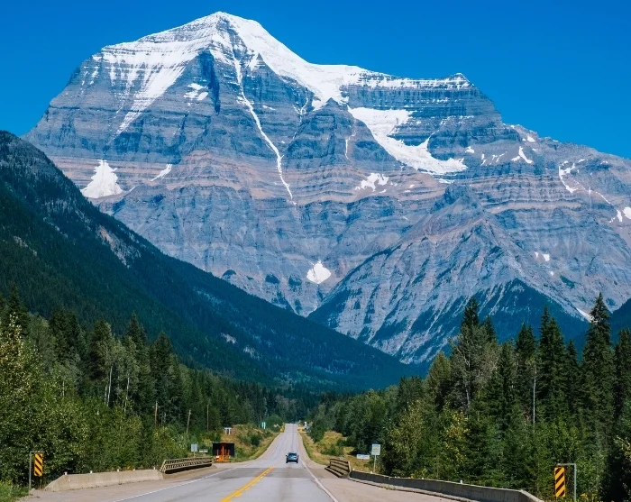 Ajettuasi tunnin verran näet horisontissa vuorenhuipun, joka vangitsee varmasti huomiosi. Kyseessä on Mount Robson, Kanadan Kalliovuorten korkein vuori. Halutessasi voit käydä Mount Robson Caféssa kahvitauolla, jota et hetkessä unohda! Nauti rauhallisesta ajelusta ja henkeäsalpaavista näköaloista jylhille vuorille.