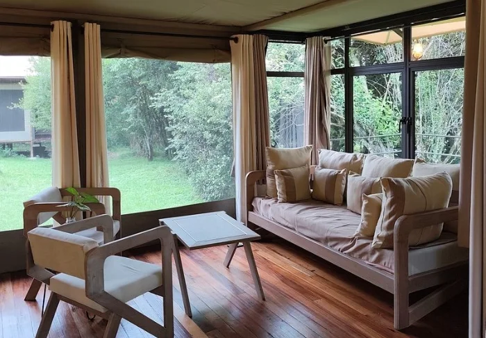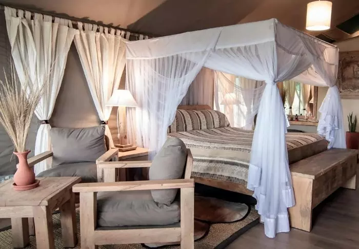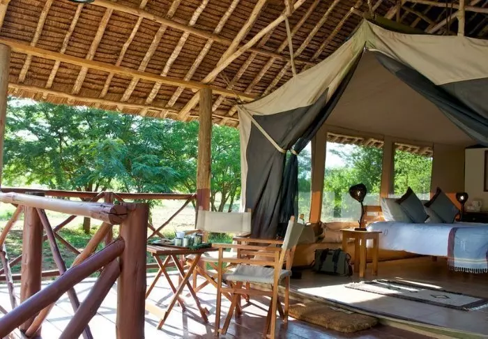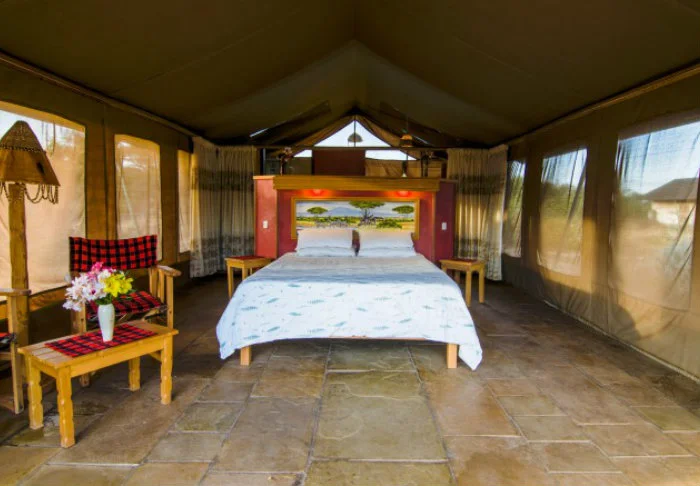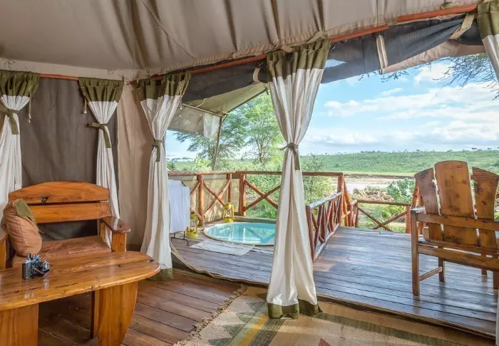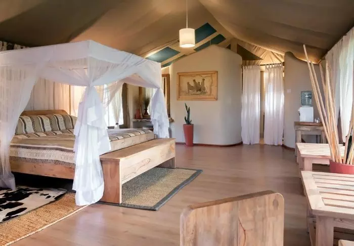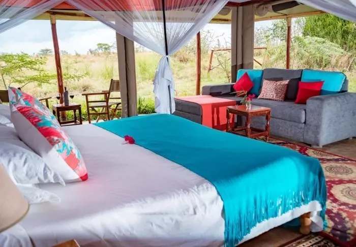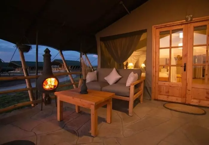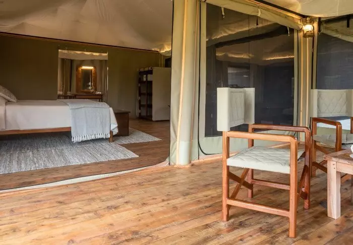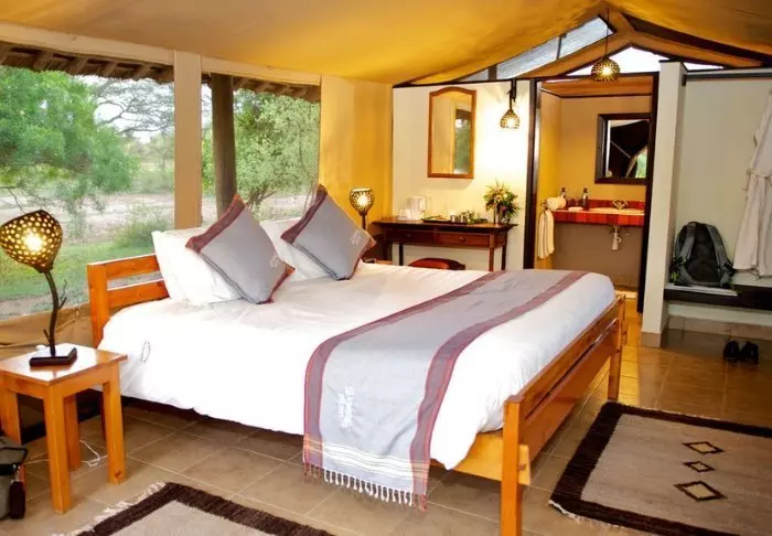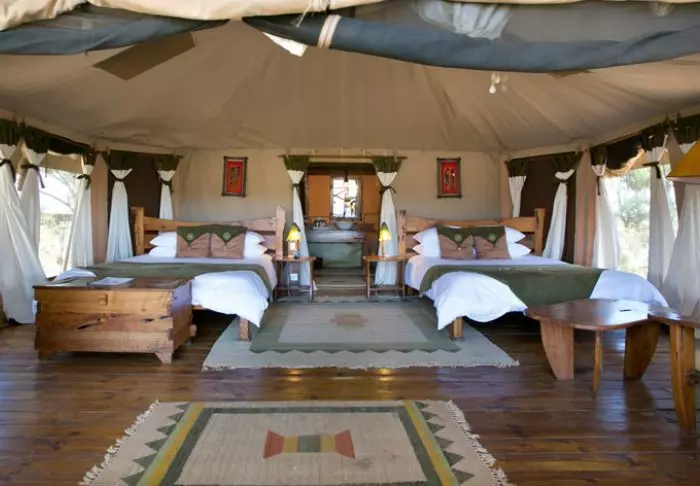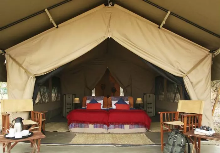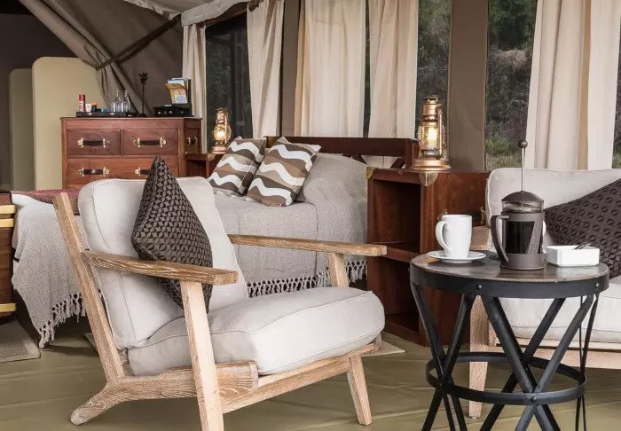 Teltat ovat suuria ja tyylikkäästi sisustettuja. Vuoteissa on oikeat tyynyt ja pehmeät puuvillalakanat. Myös masaikulttuuri näkyy sisustuksessa, kuten värikkäissä seinävaatteissa ja käsintehdyissä kalusteissa. Kaikki telttaseinät ovat kangasta – myös kylpyhuoneen. Kylpyhuoneessa on silti oikea WC-istuin, juokseva vesi ja suihku, joten vaikka asut teltassa ja voit kuulla ja haistaa heti kangasseinän ulkopuolelta alkavan savannin, et joudu tinkimään mukavuuksista. Jokaisen teltan edessä on oma pikku ”kuisti”, jossa on safaripöytä ja -tuolit. Viihtyisällä kuistilla tulet varmasti viettämään tunnin ja toisenkin ympäröivää luontoa ihastellen.
