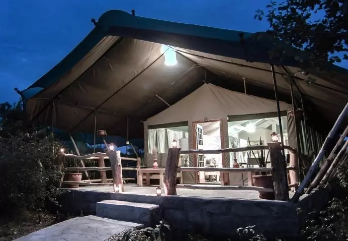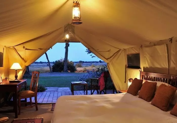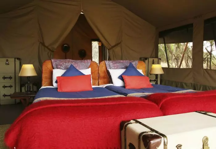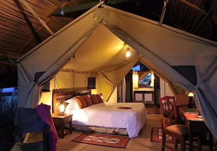 Nimensä mukaisesti tässä safarileirissä majoitutaan teltoissa.