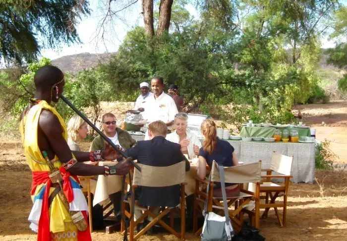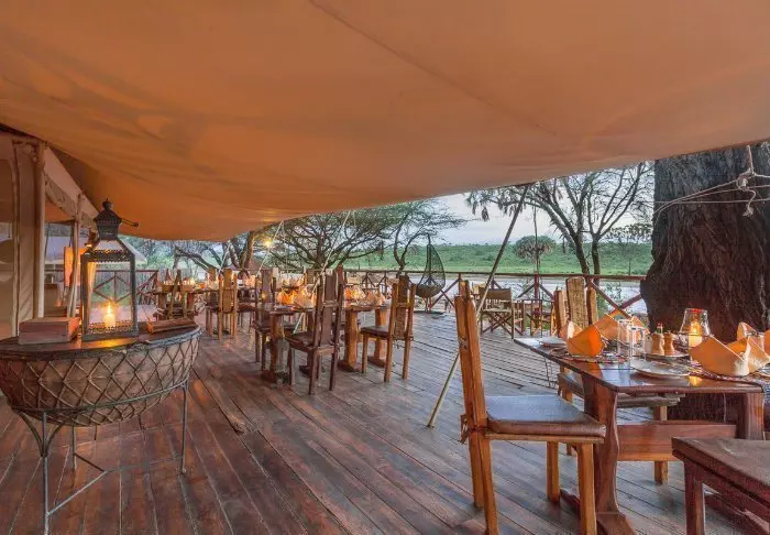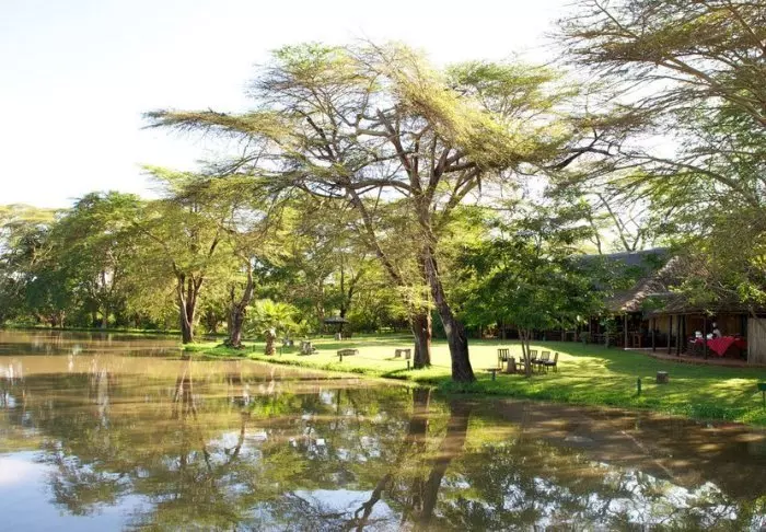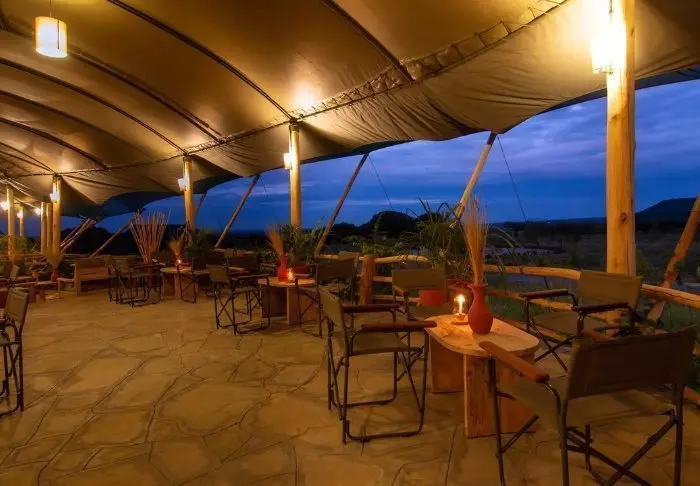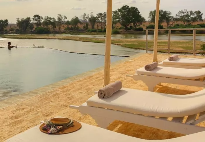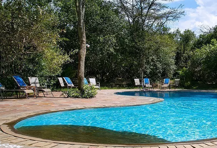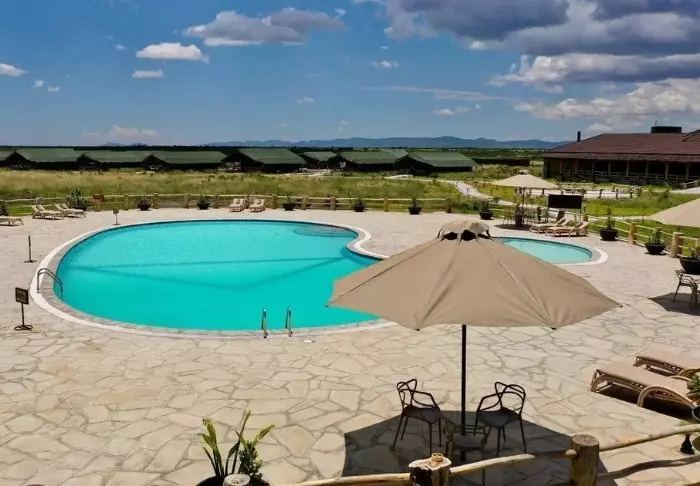 Leiriin kuuluu myös viihtyisä uima-allas, jossa on erityisen mukava virkistäytyä siksi, että tässä osassa Keniaa on varsin kuuma ja kuiva ilmasto. Leirin ravintolasta avautuu hieno näköala ympäröivään luontoon.