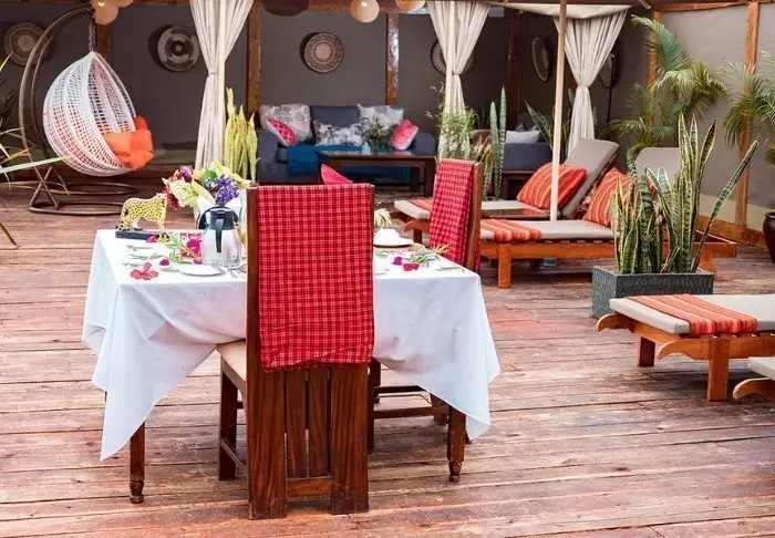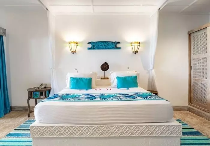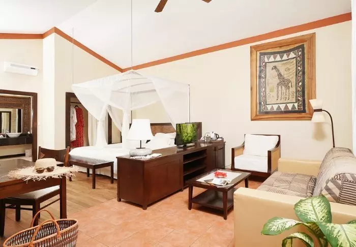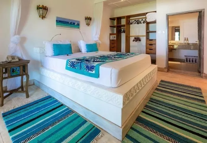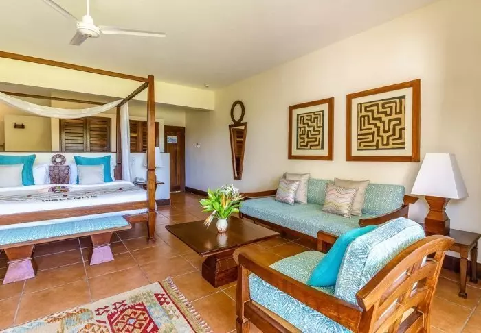 Kaikki huoneet on sisustettu yksilöllisesti perinteiseen swahilityyliin. Huoneissa on minibaari, WIFI, tallelokero, ilmastointi ja hyttysverkot vuoteissa.