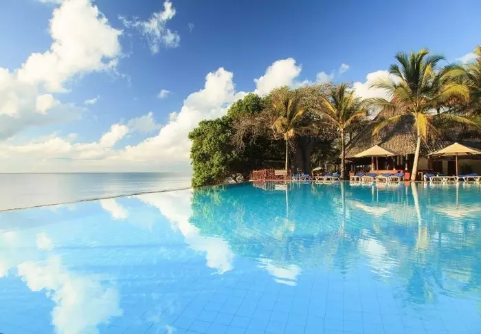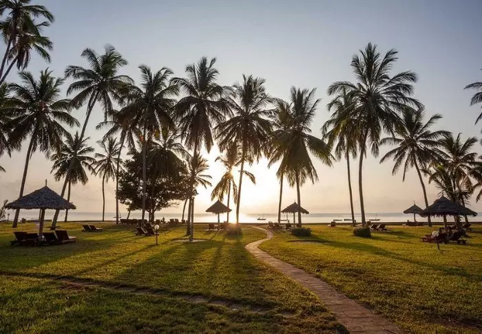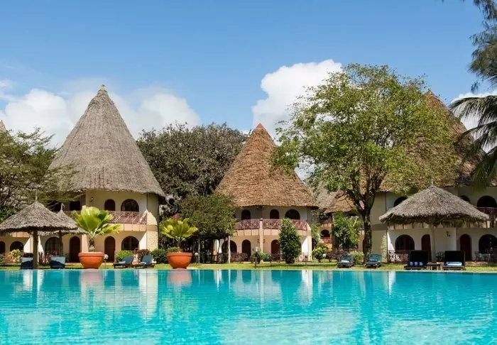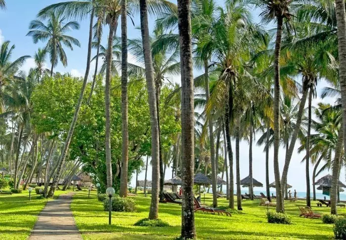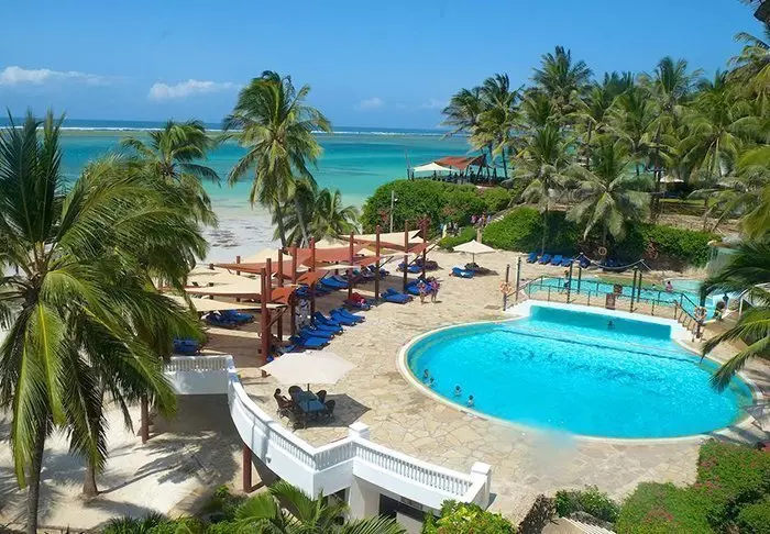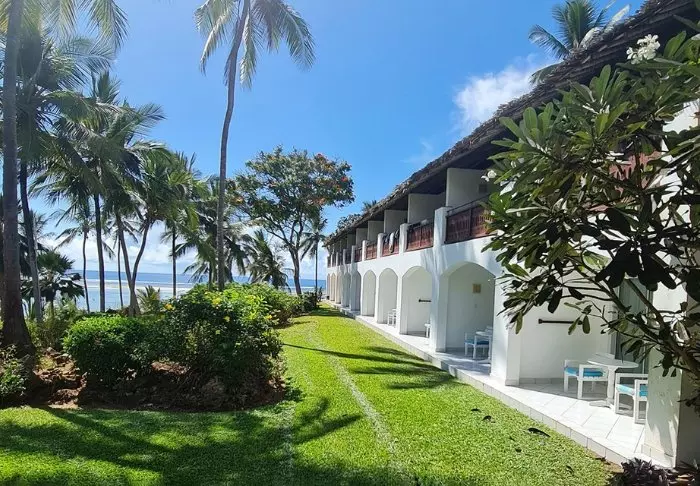 Resort sijaitsee valkohiekkaisella Diani Beachilla, joka on yksi maailman kauneimmista hiekkarannoista. Näköalat Intian valtamerelle ovat kuin suoraan postikortista! Jopa resortin 18-reikäiseltä golfkentältä avautuu hieno näköala turkoosille merelle.