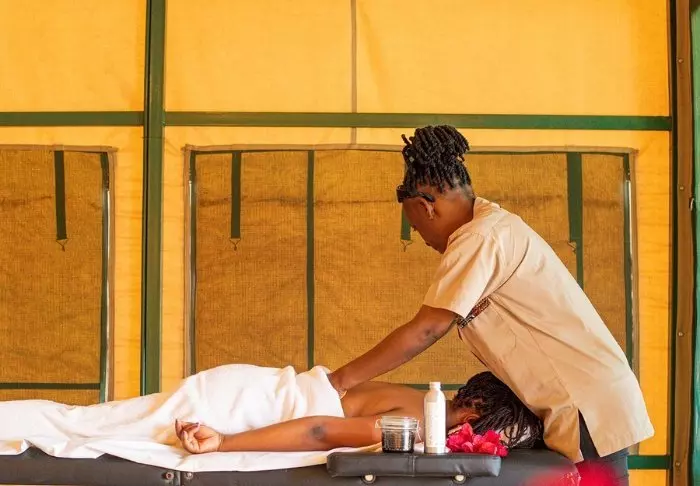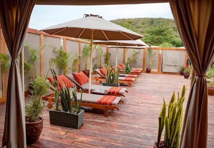 Tapahtumarikkaan safaripäivän jälkeen voit rentoutua uima-altaalla tai vehreässä puutarhassa. Lisämaksusta on saatavilla myös hierontaa. Jos et ole saanut tarpeeksesi Afrikan upeasta luonnosta, voit nauttia siitä omassa rauhassasi telttasi kuistilta käsin tai lodgen aurinkoterassilta, joka toimii myös näköalapaikkana.