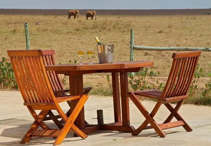 Kaikissa huoneissa on oma terassi, josta avautuu upea näköala Kilimanjaroa ympäröivien tasankojen yli.