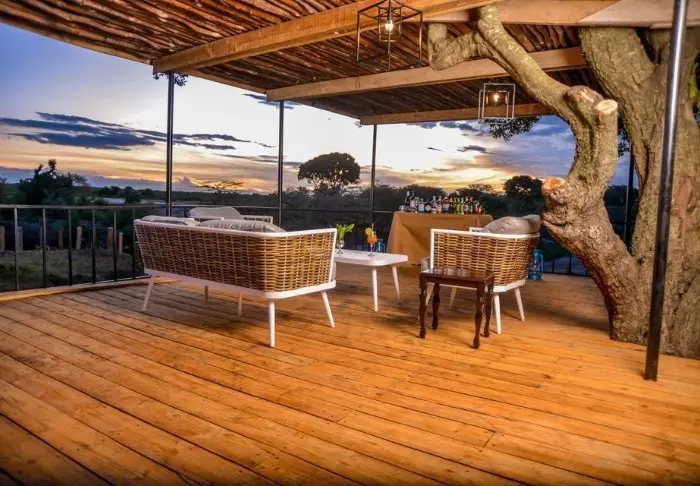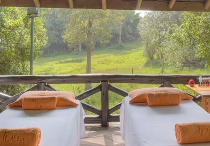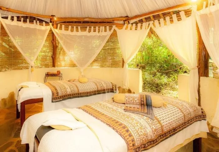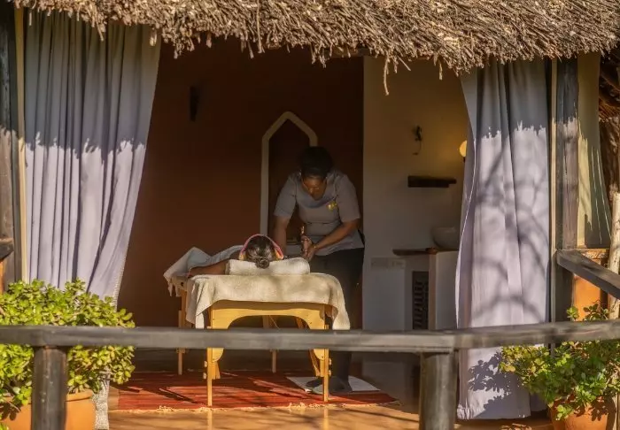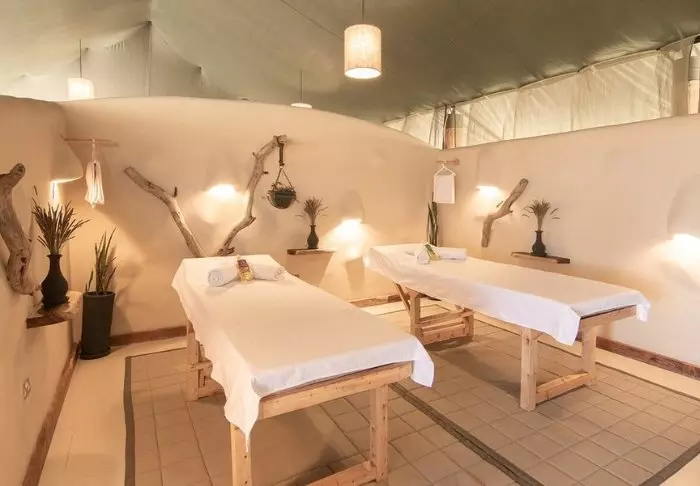 Myös uima-altaalta on hienot näkymät, ja jos kehosi tuntuu jäykältä safariautossa vietettyjen tuntien jälkeen, vierailu pienessä kylpylässä rentouttavan hieronnan merkeissä tekee ihmeitä.