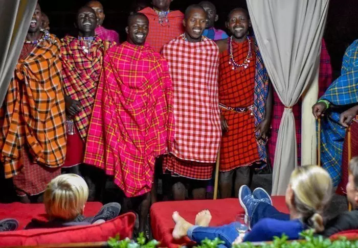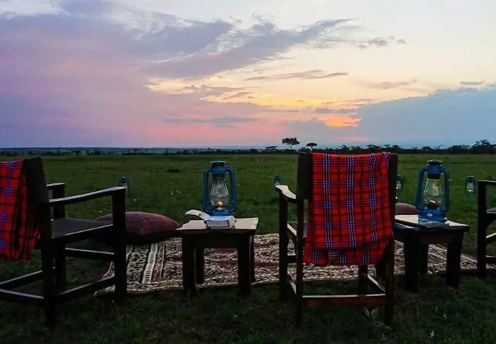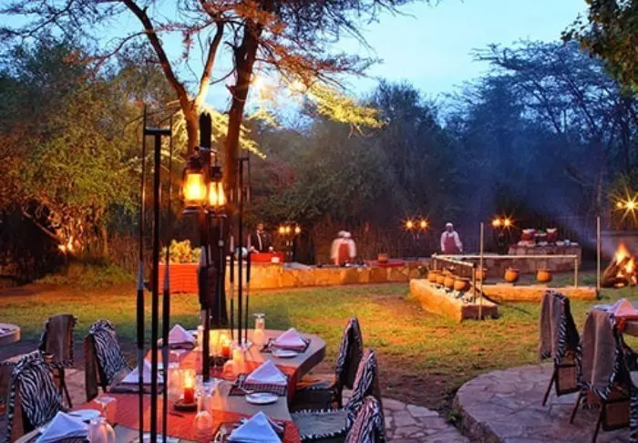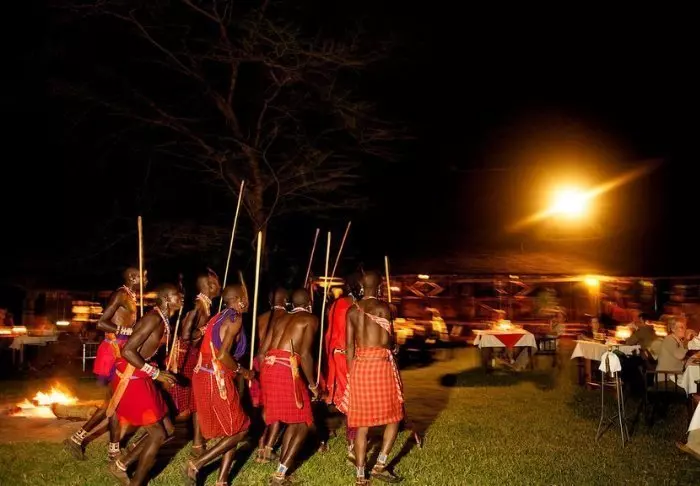 Illan tullen sytytetään leirinuotio, jonka ympärillä vietetään iltaa tähtitaivaan alla aina siihen asti, kun on aika vetäytyä yöpuulle masai-saattajan johdolla. Leirin aluetta ei nimittäin ole aidattu, joten pimeän tultua masait saattavat vieraat kaikkialle – aivan kuin perinteisellä safarilla!