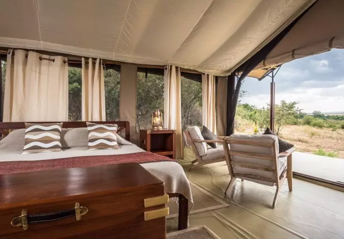 Nimensä mukaisesti tässä safarileirissä majoitutaan teltoissa, joita on yhteensä 15. Teltoissa on runsaasti tilaa sängylle, viihtyisälle oleskelunurkkaukselle, minibaarille ja matkatavaroille. Tilavalla verannalla voit nauttia upeista näköaloista Masai Maraan – ja jos tunnet olosi vähän laiskaksi, voit jäädä sänkyyn ja nauttia näkymistä suurten ikkunoiden läpi. Kaikissa teltoissa on WiFi.