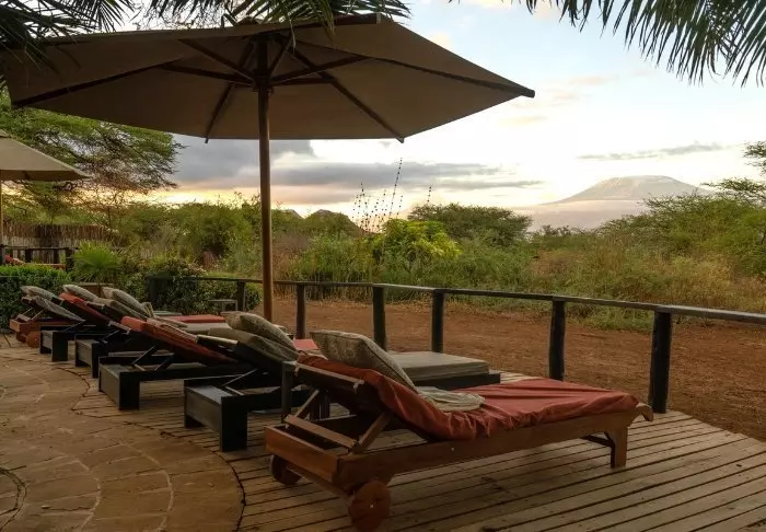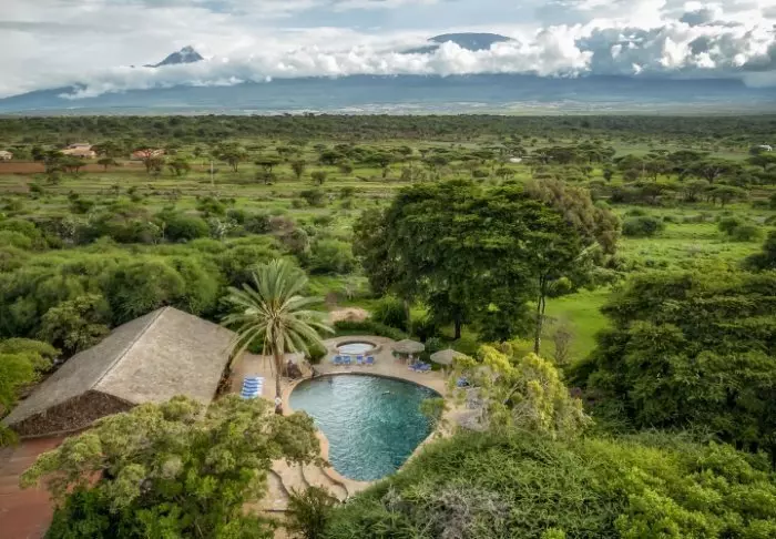 Tämä viihtyisä lodge sijaitsee aivan Amboselin kansallispuiston vieressä Kilimanjaron juurella.