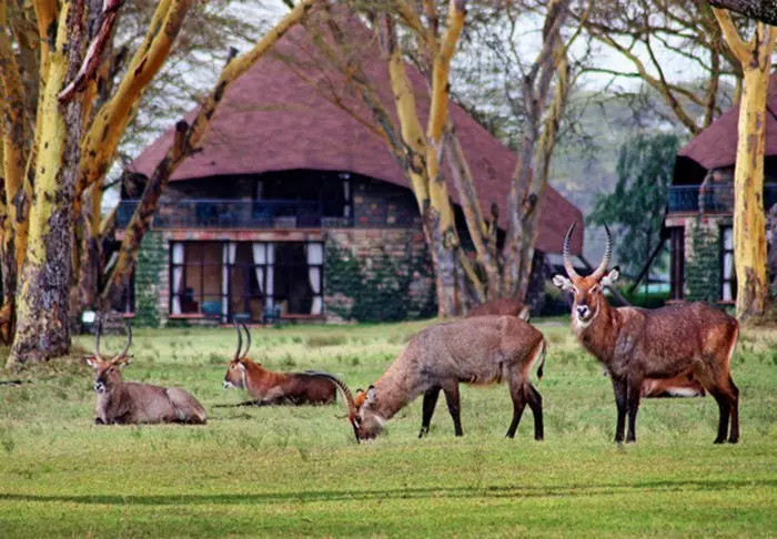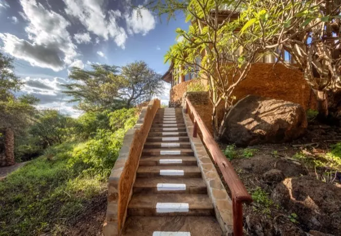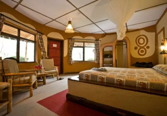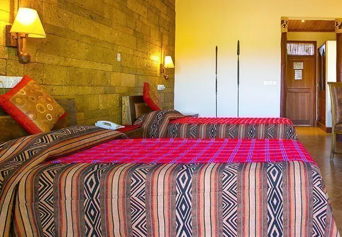 Lodge koostuu 7 pienistä kaksikerroksista ”taloista”, joissa jokaisessa on 10 huonetta. Huoneet ovat sisustettu mukavaan afrikkalaiseen tyyliin. Kaikissa huoneissa on oma kylpyhuone, kattotuuletin, tee- ja kahvinkeittotarvikkeet ja kaikkein tärkein: suuri terassi tai parveke tasangon eläinten katseluun.