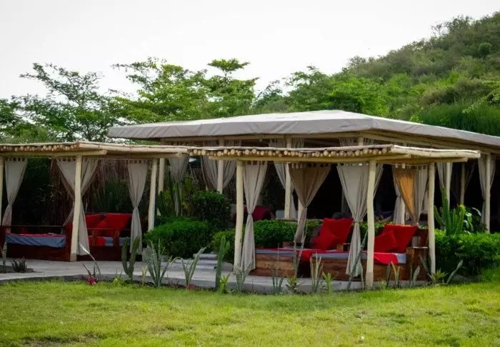 Leirissä on 56 telttaa, joista osasta on näkymät puutarhaan ja osasta leirin edessä olevalle vesialtaalle.