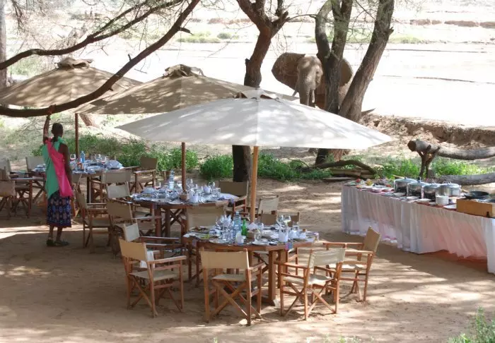 Telttoja on yhteensä 19, ja kaikkiin kuuluu oma terassi jokinäköalalla. Ewaso Nyiro on Kenian kolmanneksi pisin joki, ja se on monella tapaa elintärkeä maan pohjoisten osien asukkaille.