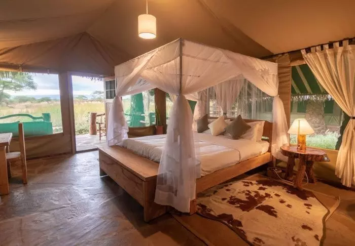 Olengoti Safari Campiin kuuluu itse asiassa kaksi leiriä: klassinen afrikkalainen telttaleiri sekä luksusmökeistä koostuva leiri.